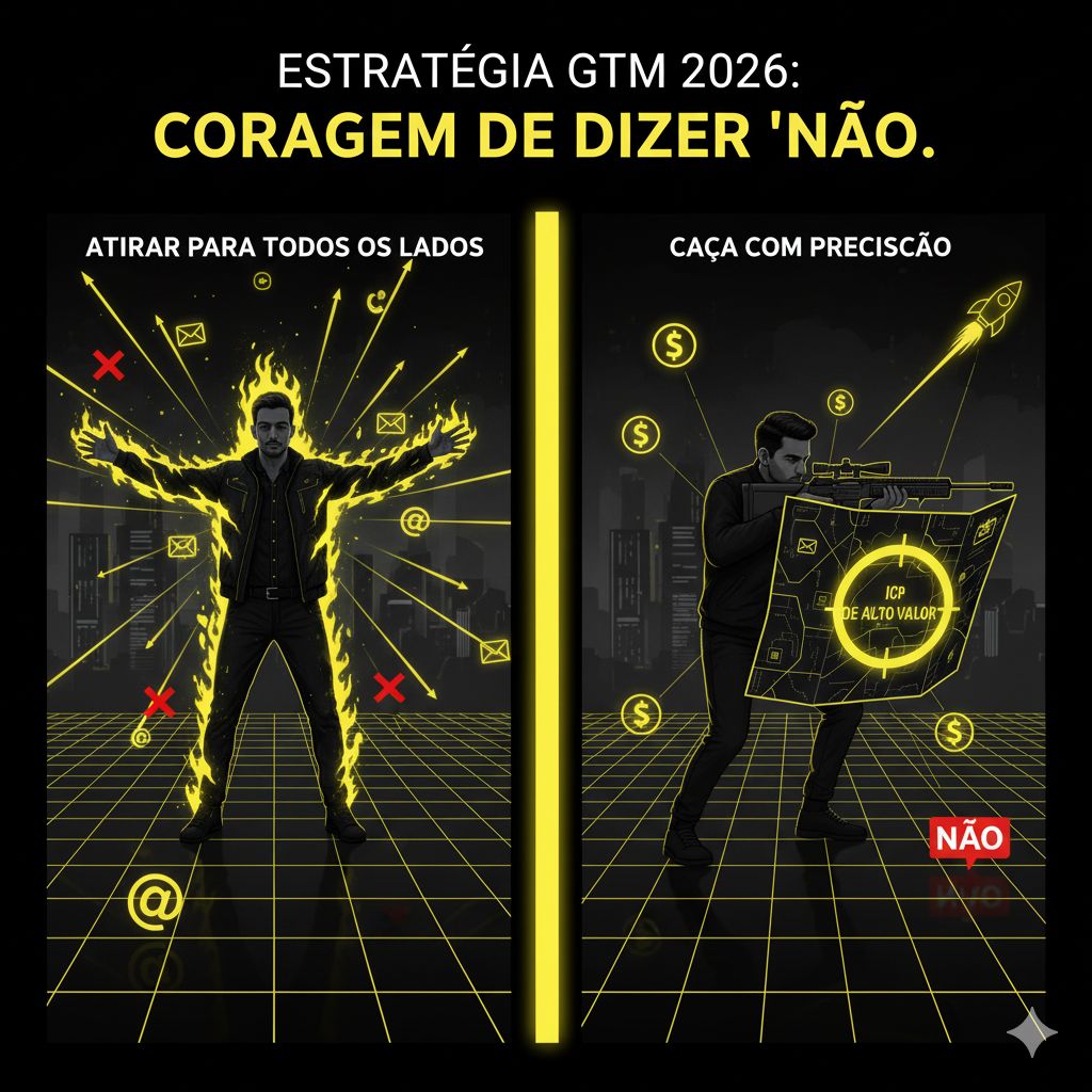 A verdadeira estratégia Go-to-Market (GTM) para 2026 não é definida pelos clientes que eu decido prospectar, mas pelos clientes que eu decido ignorar. Meus recursos (tempo, energia, dinheiro) são limitados. Atirar em tudo é desperdiçar munição.